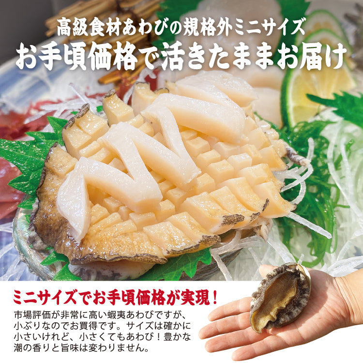 ポイント : 高級食材あわびが訳ありミニサイズでお手頃価格!活きたままお届けしますので、お刺身も楽しめます!