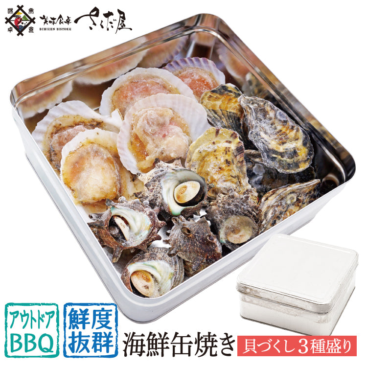ポイント : 旨味たっぷり!国産の厳選した貝3種を缶に入れてお届けします。缶に並べて蓋をし蒸し焼きにするだけの簡単調理。BBQやホームパーティーにいかがですか♪