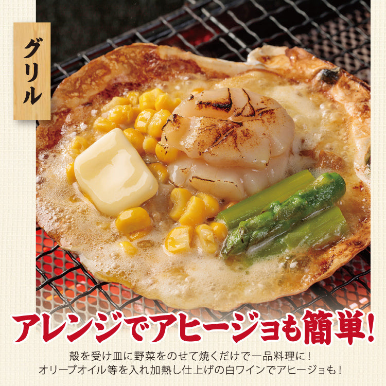 片貝付きなので、網焼きやBBQ(バーベキュー)でもご利用頂けます。