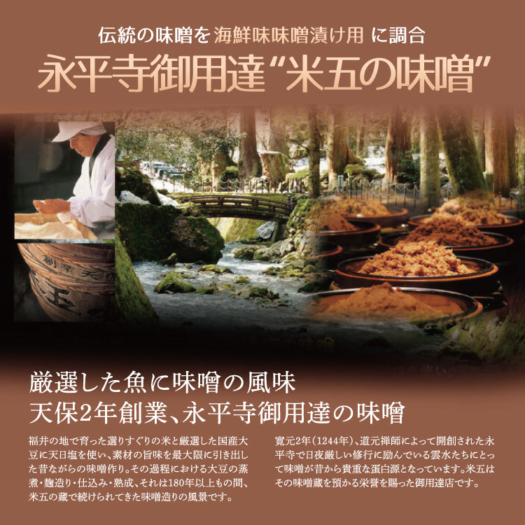 さらに、味噌漬けには永平寺御用達「米五の味噌」を特別に調合し、72時間じっくり低温熟成。
